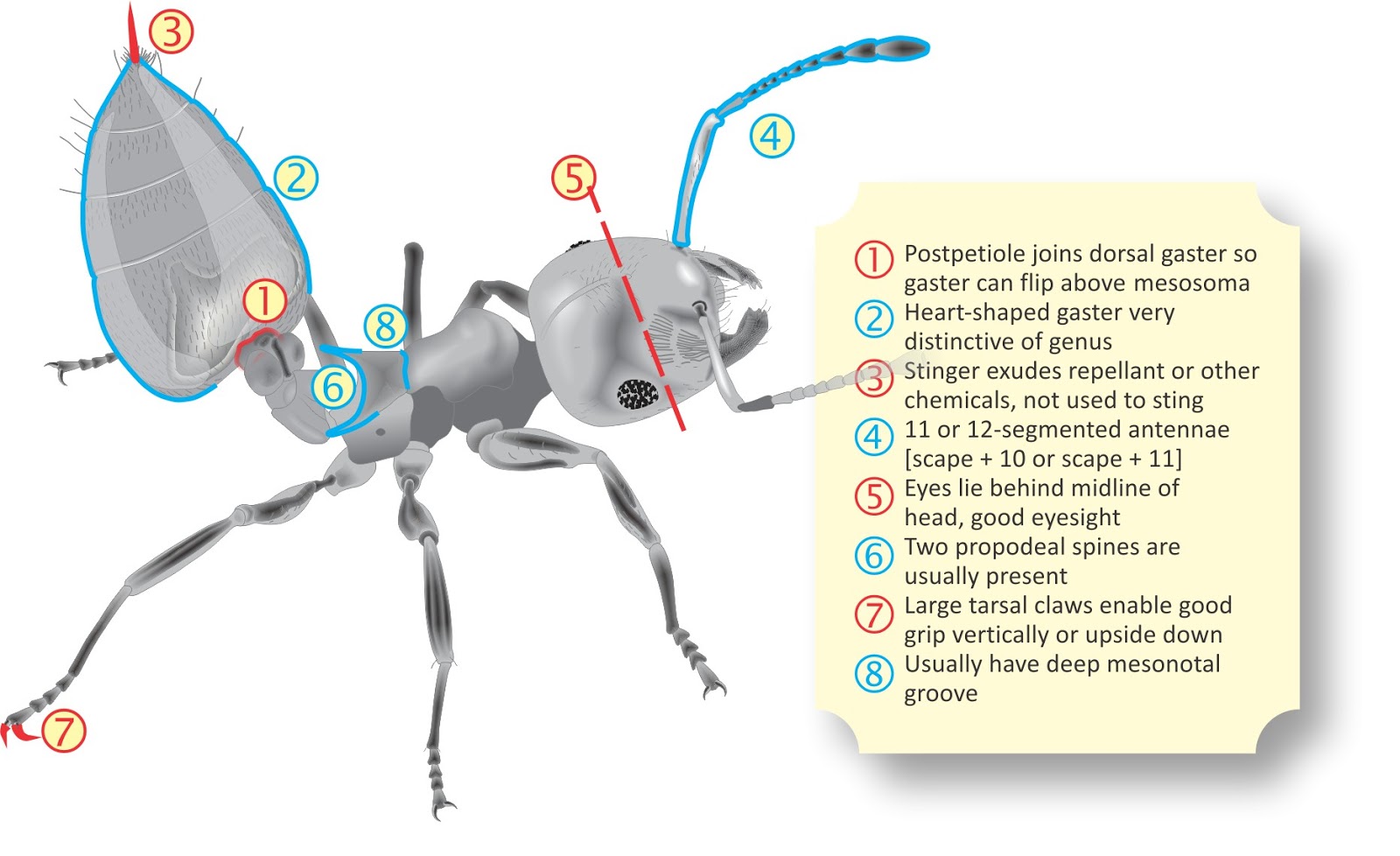The ants second body segment the mesosoma is packed full with muscles that power its three pairs of legs. The eyes the antennae and the mandibles. The diagram below will help you learn more about the antaomy of ants. Ants evolved from wasp like ancestors in the cretaceous period about 140 million years ago and diversified after the rise of flowering plants.