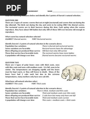 Darwin S Natural Selection Worksheet