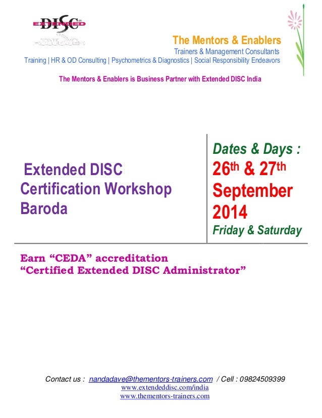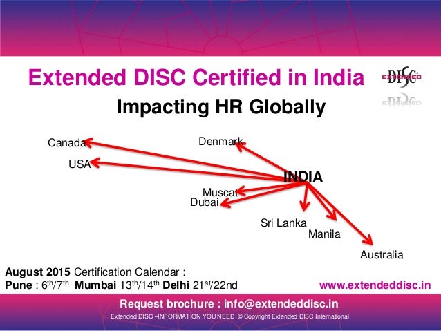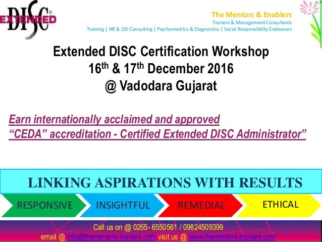 Whenever we do any disc sessions we always build in disc training activities. The organizational development and training department is responsible for delivering training to 15000 internal customers across. Extended disc individual assessments are the only disc assessments in the world that can be customized to your unique needs and applications. Not only is an extended disc certification beneficial for individuals who desire to understand extended disc but our virtual public and onsite certification options are approved for re certification hours toward phr sphr and gphr through the hr certification institute.