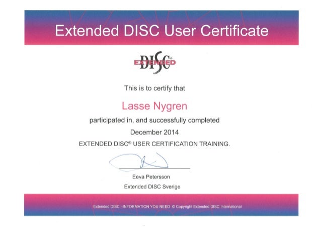 Some methods of learning do not work for everyone. However we offer several certification options to fit your needs and preferences. Extended disc is a suite of online disc assessments that identifies individuals hard wired disc style. Training can be fun and effective with the right tools and creative content.