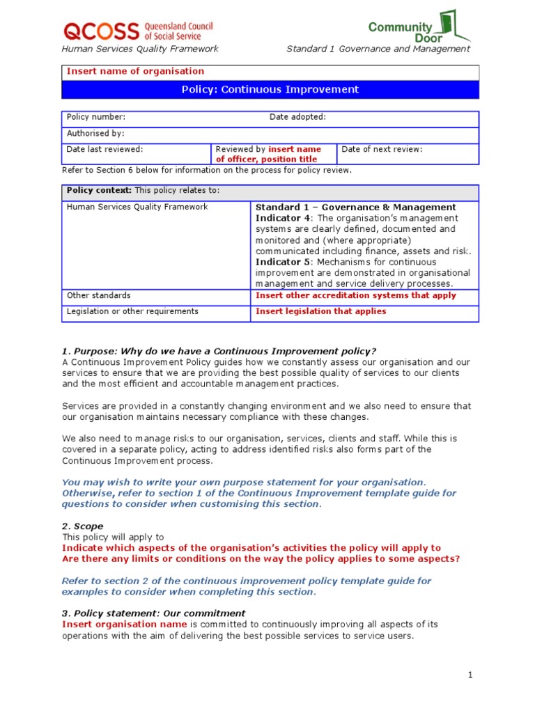 1 15 Continuous Improvement Policy Template Policy