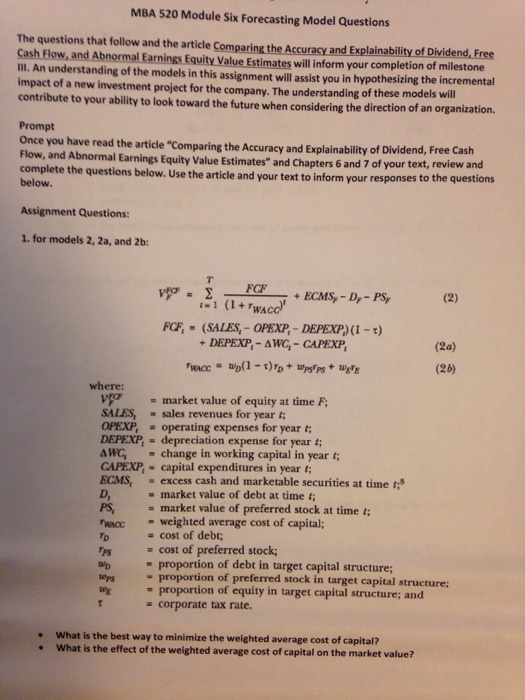 Mba 520 Module Six Forecasting Model Questions 30 Off