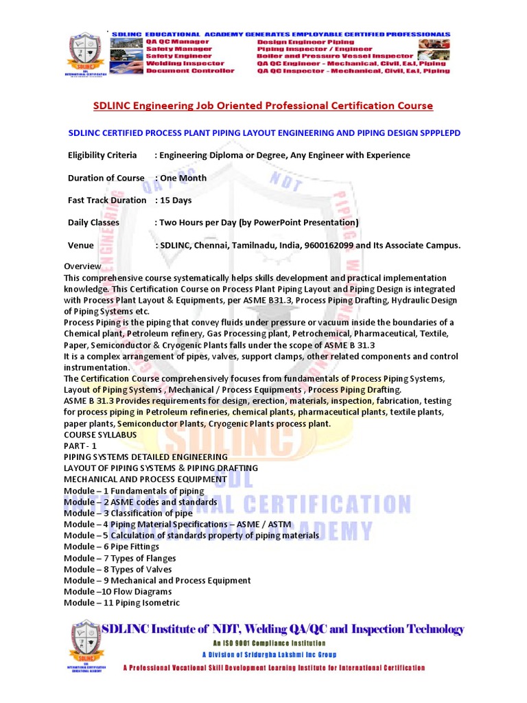 Piping Engineering Course In Chennai Piping Course In