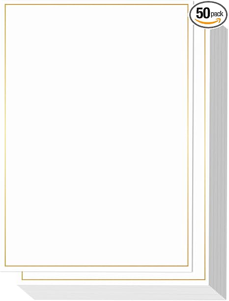 50 Pack Metallic Gold Foil Border Invitation Paper Certificates Announcements Personal Messages Awards Stationery Envelopes Included 5 X 7