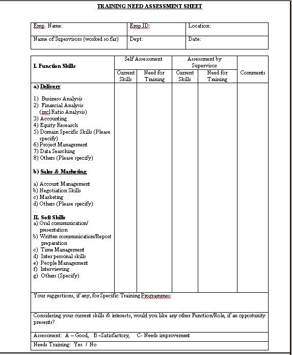 Training Needs Analysis Form Free Download