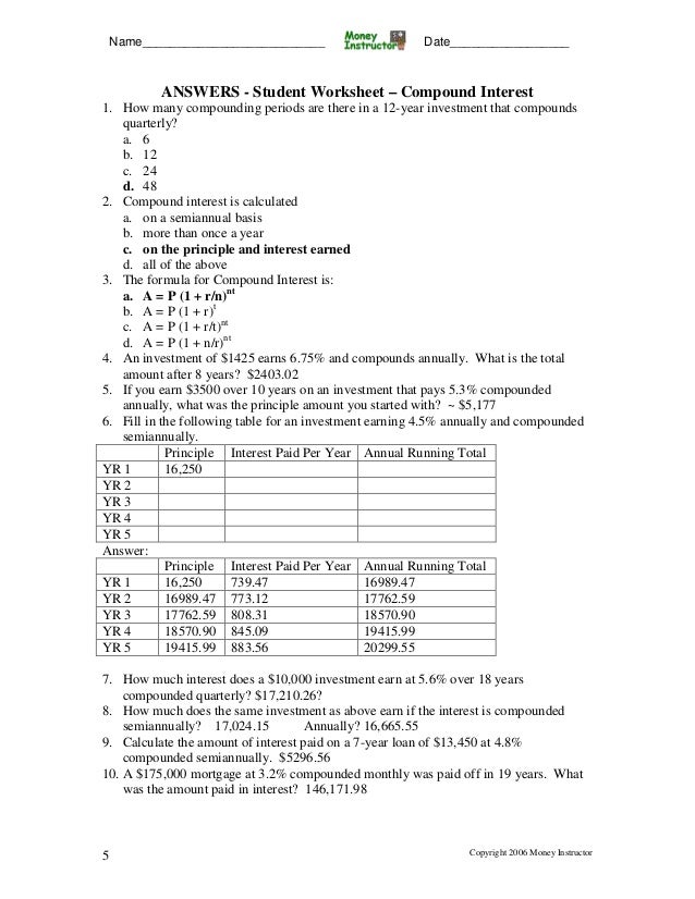 Simple And Compound Interest Practice Worksheet Answers
