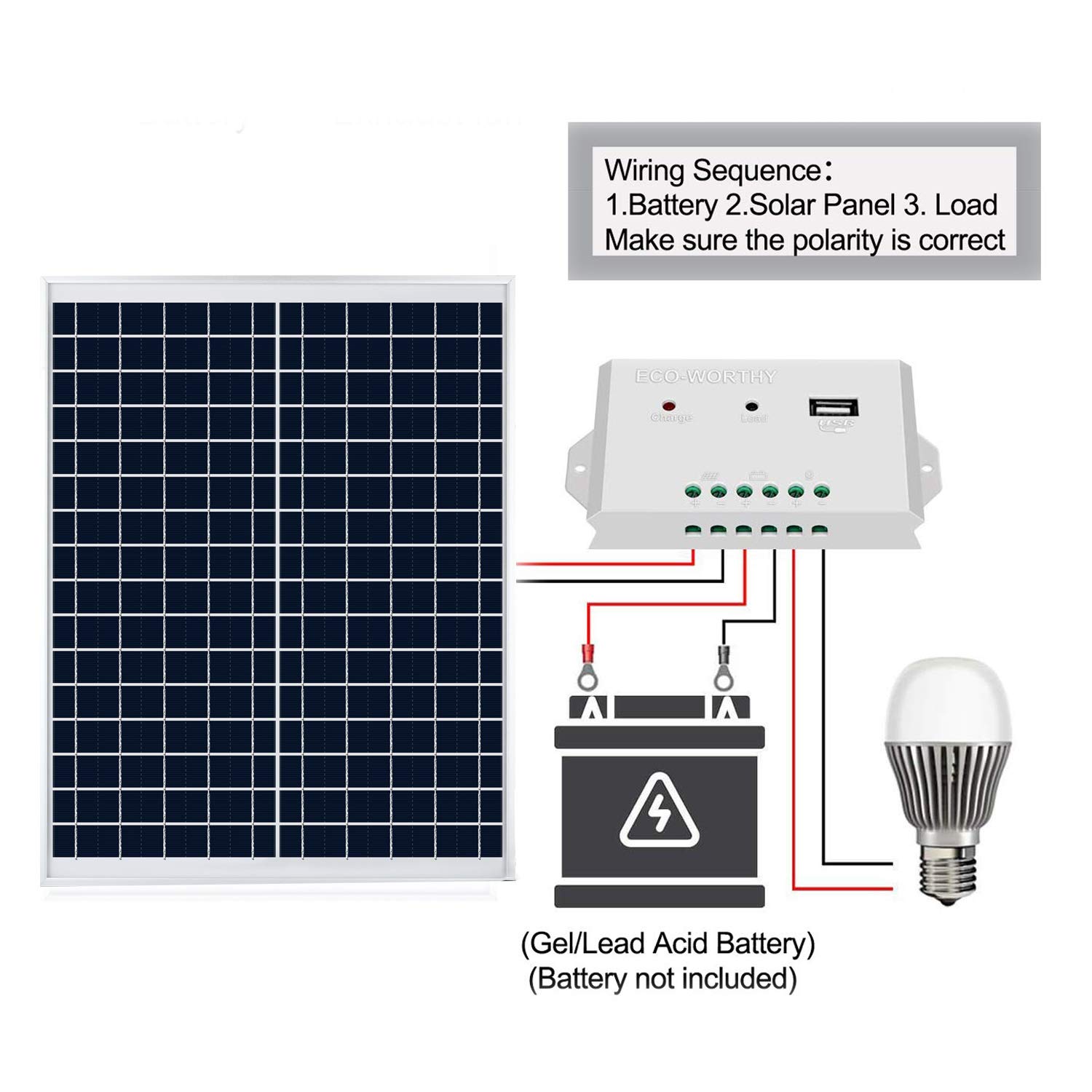 Eco Worthy 20 Watts 12v Solar Panel Kit Waterproof 20w Solar Panel 3a Usb Port Charge Controller 6 Feet Isolated Battery Clips