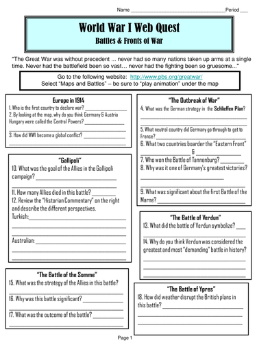 16 Causes Of World War 1 Worksheet Answers Whh World